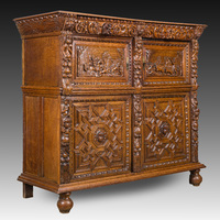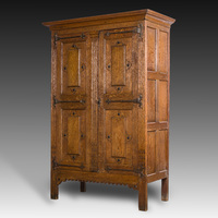 A Flemish oak two door cupboard with cast iron hinges, 17th C.