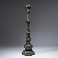 A large Japanese bronze and champlevé torchère, Meiji, ca. 1900