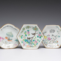 Two Chinese qianjiang cai and one famille rose tazza, 19th/20th C.