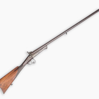 A French double barrel percussion shotgun with damask barrels and engraved breechblocks, marked 'Vrai Tordu Rubans', 19th C.