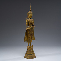 H 78 cm - Dia.: 37 cm (A French gilt brass and bronze-mounted wooden gueridon with marble top, 19th/20th C.)