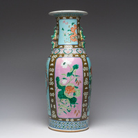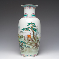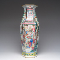 A Chinese hexagonal famille rose vase with figurative design all around, 19th C.