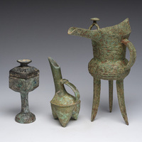 - The tallest in good condition, the base with some casting flaws, the general surface with superficial wear and patination.