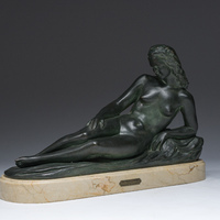 Paule Bisman (1897-1973): 'Ondine', bronze à patine verte sur socle en marbre, éd. 3/12