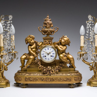 Garniture de cheminée de trois pièces en bronze partiellement doré, France, 19ème siècle