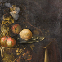 École européenne: Nature morte aux fruits et au citron sur un plateau en étain, huile sur toile, seconde moitié du 18ème siècle