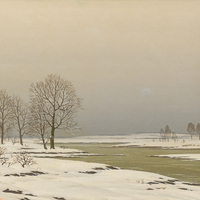 Pierre de Clausade (1910-1976): 'Bord de Loire sous la neige', huile sur toile