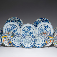 Collection variée de carreaux en faïence de Delft bleu, blanc et manganèse, 18ème/20ème siècle