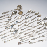 Collection variée de couverts en argent et métal argenté, styles et origines diverses, Wolfers, Delheid, Allemagne, etc., 19ème/20ème siècle