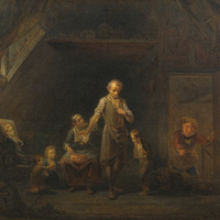 Ecole belge: Portrait d'une fillette et de son chien, huile sur toile, 19ème siècle