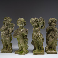 Quatre putti musiciens en pierre reconstituée, 20ème siècle