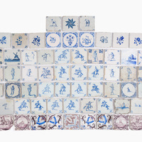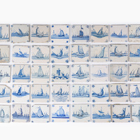 40 carreaux en faïence de Delft en bleu et blanc à décor de bateaux, Pays-Bas, 18ème siècle