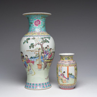 Grand pot à pinceaux en porcelaine de Chine famille verte à décor d'oiseaux sur branches fleuries et de papillons, Chine, 20ème siècle