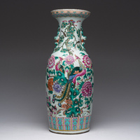 Een paar Chinese famille rose vazen met granaatappels, bloesemtakken en vleermuizen, Yongzheng merk, 20ste eeuw