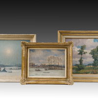 Karel Van Lerberghe was trained at the Academies of Bruges and Ghent and he is best known for his 'poetic' landscapes. Initially, he found his inspiration in the West Flemish landscape with its gently undulating plains and the endless sky above. He was often captivated by the landscape beneath the snow.