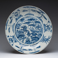 Een Chinese blauw-witte 'sanduo' schotel, Kangxi